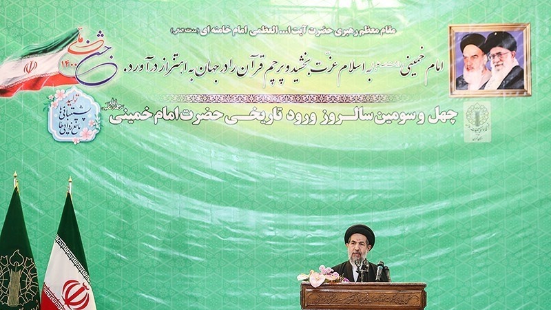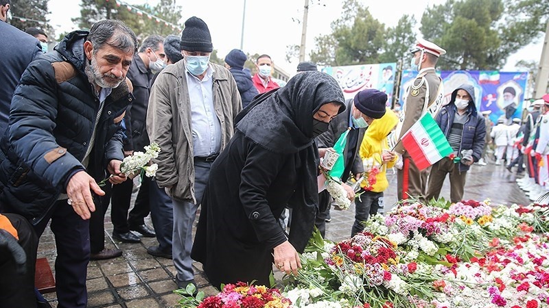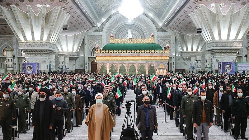 Pejabat pemerintah, militer dan masyarakat menghadiri peringatan 12 Bahman di Kompleks Makam Imam Khomeini ra di Tehran, ibu kota Republik Islam Iran pada hari Selasa, 1 Februari 2022.