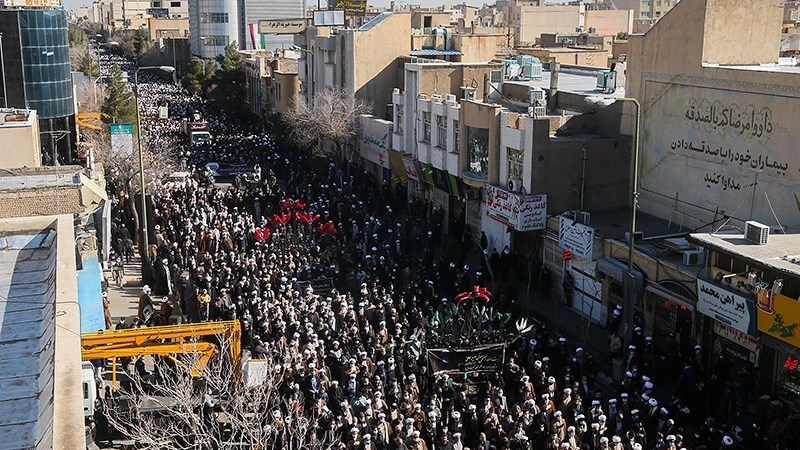 Warga Qom dan kota-kota lain di Iran, para santri dan ulama Hauzah Ilmiah Qom mengikuti upacara tasyi' yang digelar di tempat terbuka pada Rabu (2/2/2022) pagi.