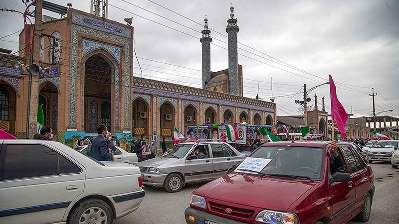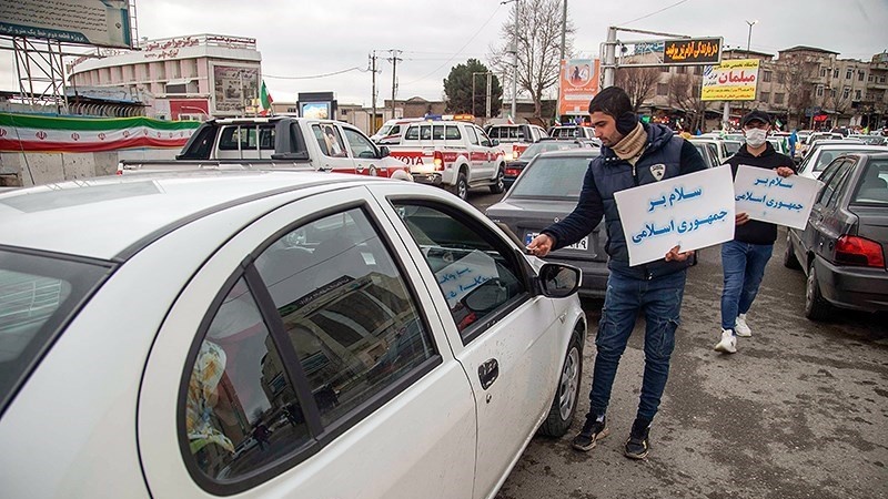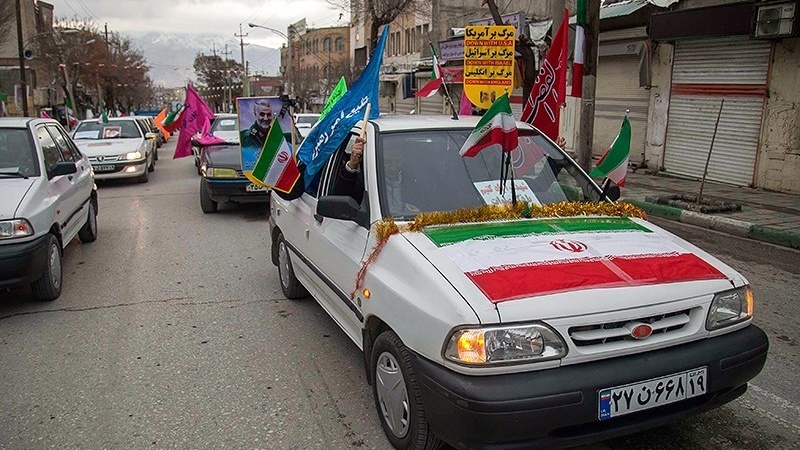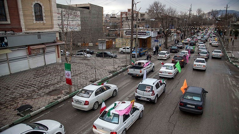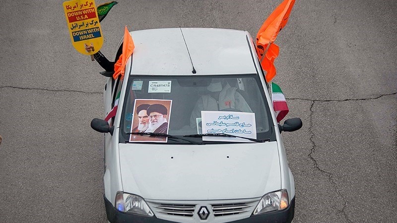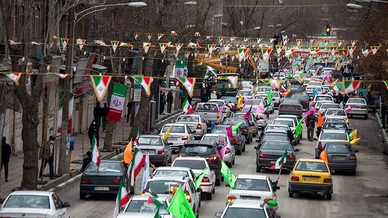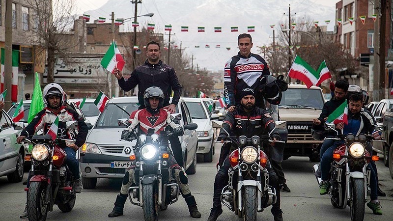 Mereka menggelar pawai motor dan mobil untuk memperingati HUT Kemenangan Revolusi, yang dikenal di Iran sebagai Pawai 22 Bahman.