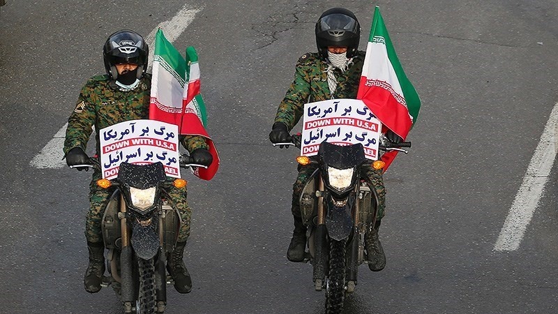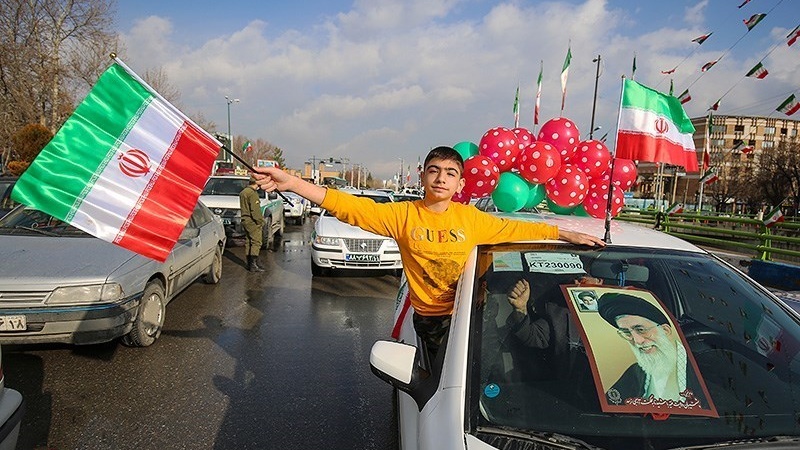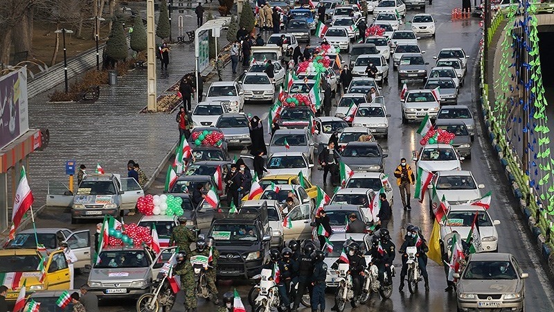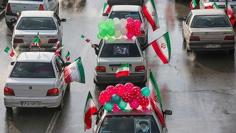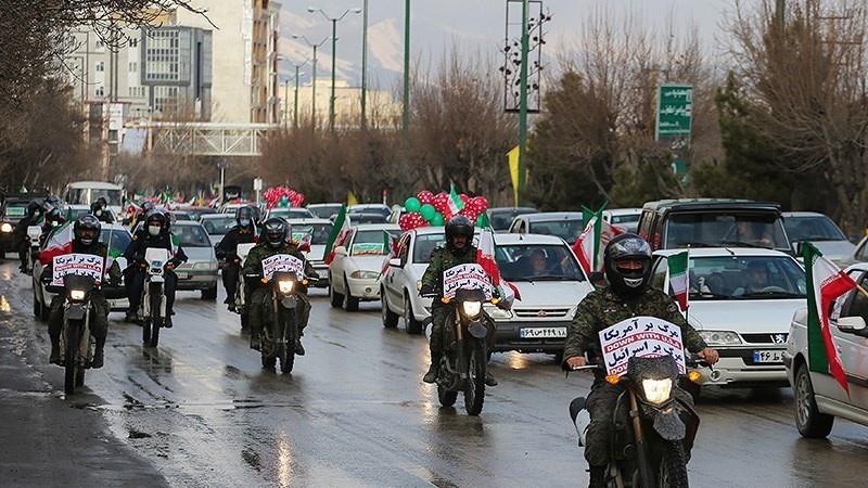 Mereka menggelar pawai motor dan mobil untuk memperingati HUT Kemenangan Revolusi, yang dikenal di Iran sebagai Pawai 22 Bahman.