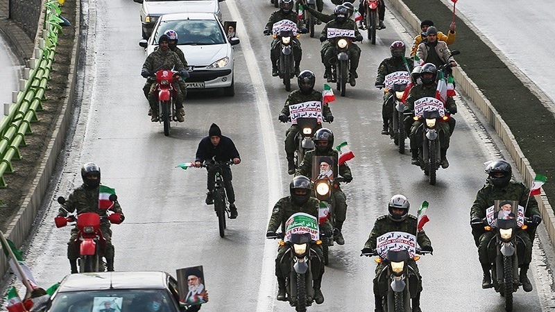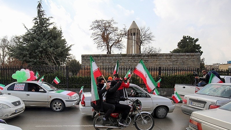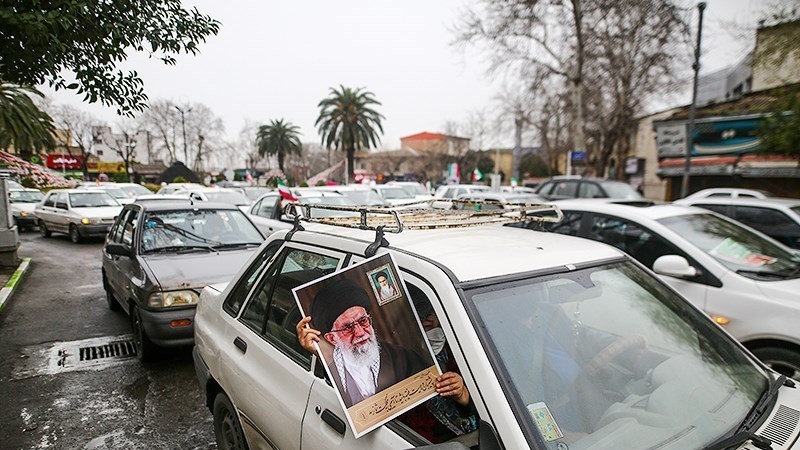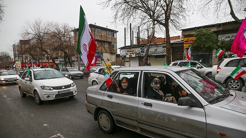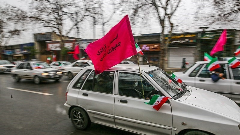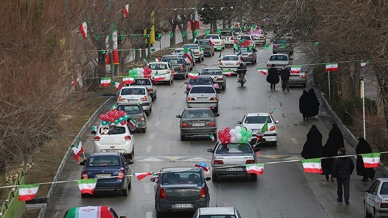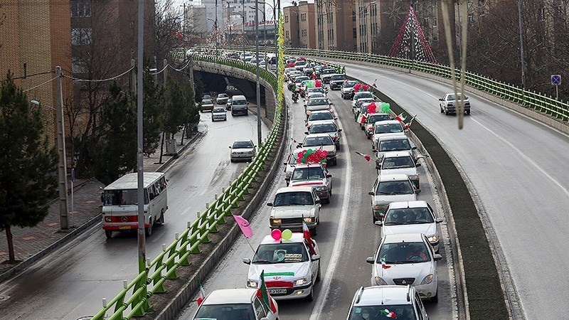 Mereka menggelar pawai motor dan mobil untuk memperingati HUT Kemenangan Revolusi, yang dikenal di Iran sebagai Pawai 22 Bahman.