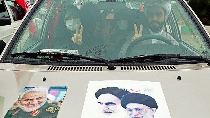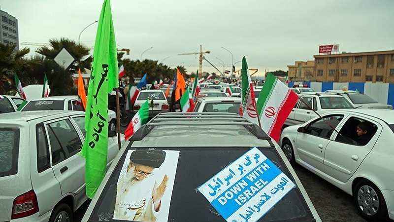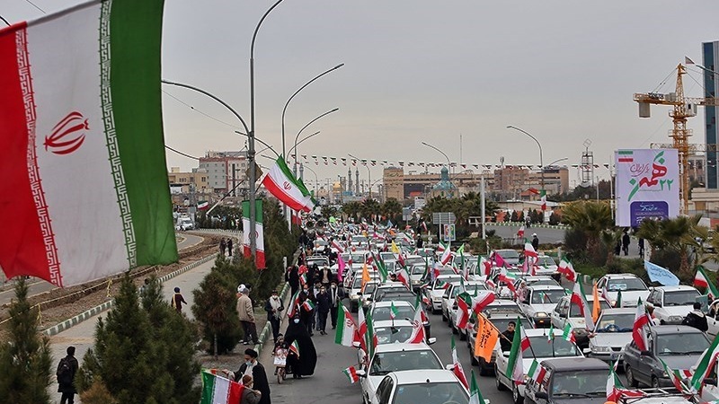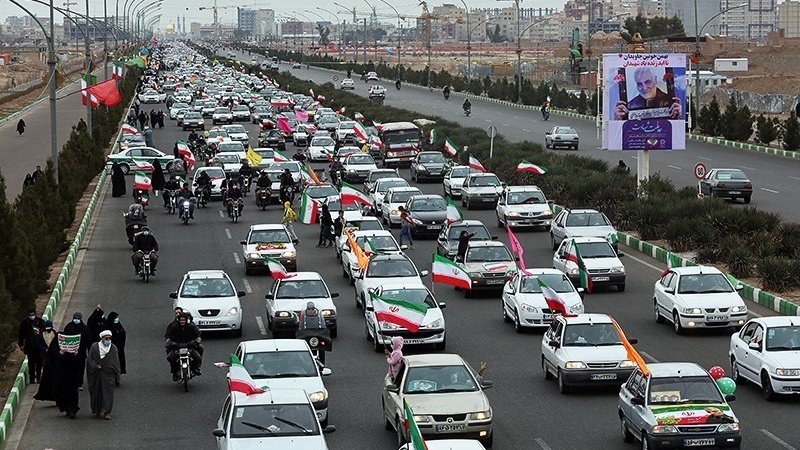 Mereka menggelar pawai motor dan mobil untuk memperingati HUT Kemenangan Revolusi, yang dikenal di Iran sebagai Pawai 22 Bahman.