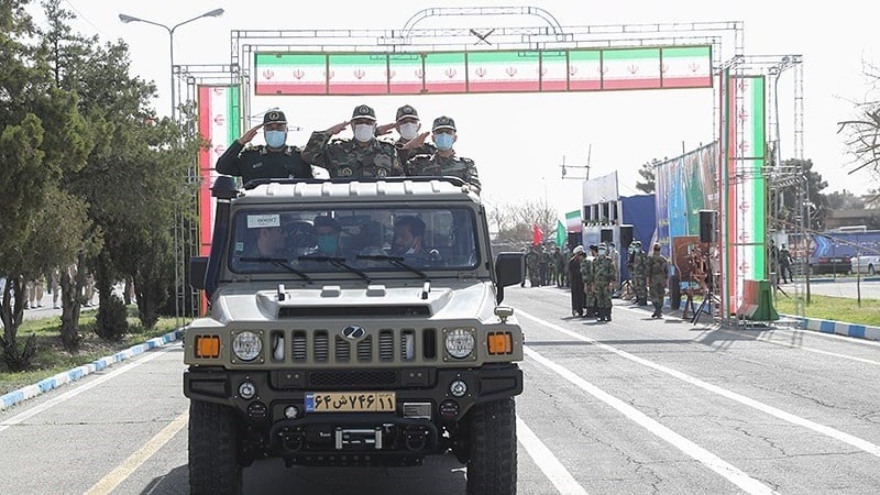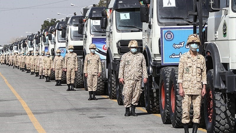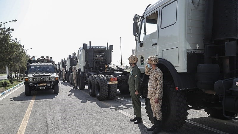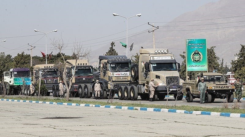Pasukan Angkatan Darat Militer Republik Islam Iran (NEZAJA) menggelar manuver pengerahan kendaraan semi berat dan super berat di Tehran, pada hari Minggu, 22 Maret 2022 untuk menunjukkan kemampuan dan efisiensi di sektor tersebut.