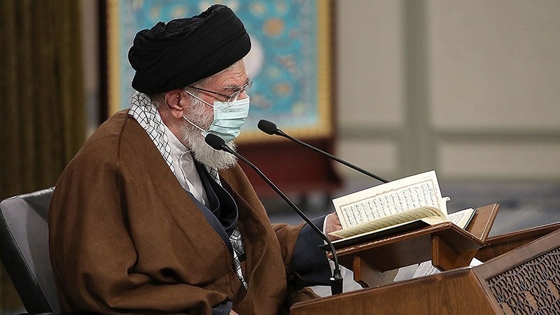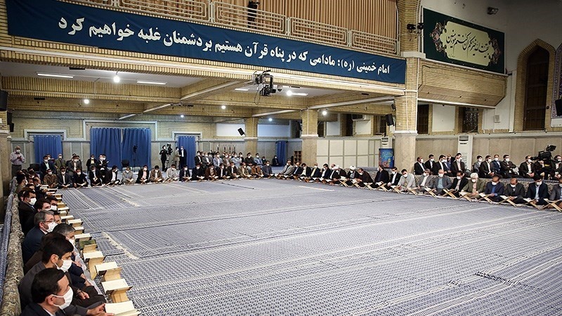 Pemimpin Besar Revolusi Islam Ayatullah al-Udzma Sayid Ali Khamenei menghadiri acara Tadarus al-Quranul Karim di Huseiniyah Imam Khomeini ra di Tehran, ibu kota Republik Islam Iran pada Minggu petang, 3 April 2022 atau 1 Ramadan 1443 H.