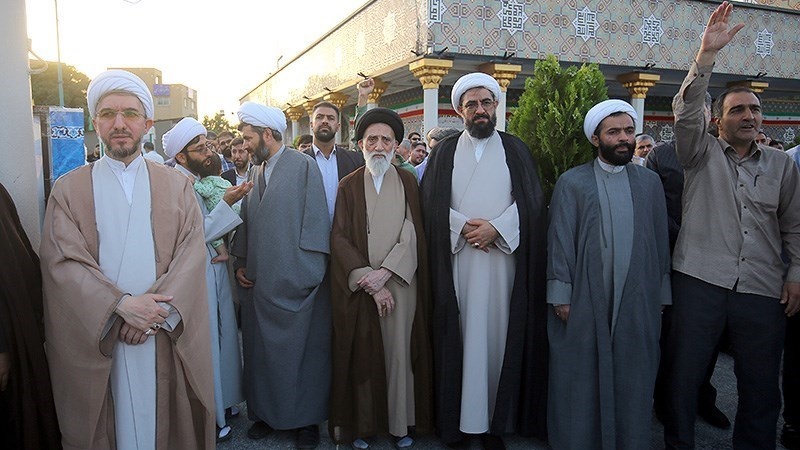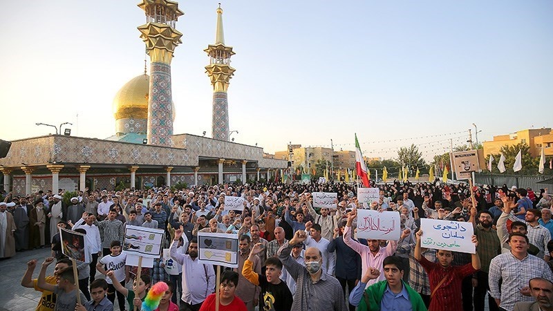Demonstrasi tersebut berlangsung di depan Kompleks Makam Imamzadeh Abdullah Hamedan pada hari Sabtu, 1 Juli 2023.