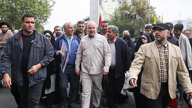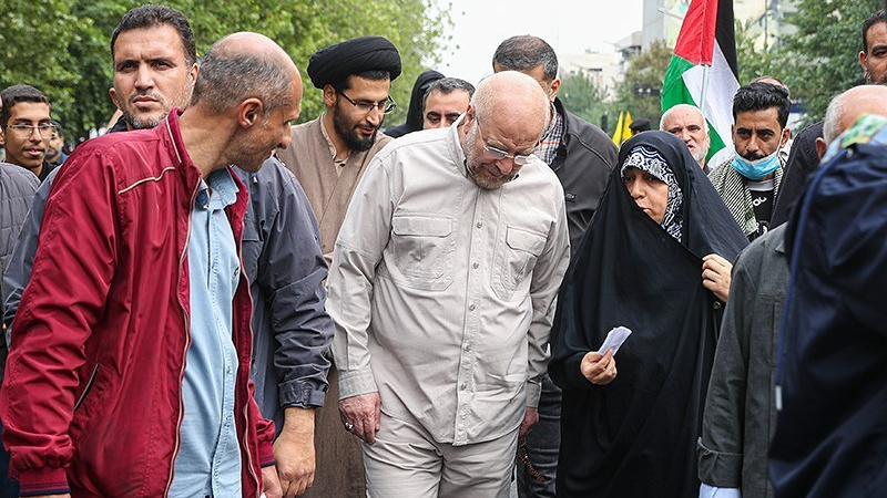 Ketua Parlemen Iran Mohammad Baqer Qalibaf dan pejabat tinggi Korps Garda Revolusi Islam (IRGC) juga tampak di antara pengunjuk rasa.