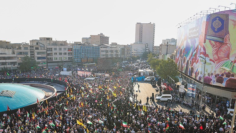 Unjuk rasa di Bundaran Enghelab, Tehran, Rabu (18/10/2023) untuk mengutuk kejahatan rezim Zionis Israel di Gaza Jalur Gaza.