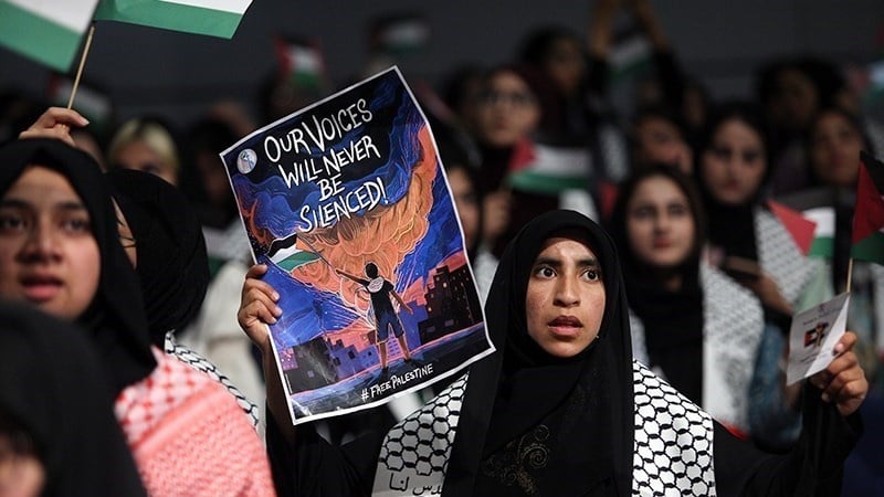 600 mahasiswa berkumpul di aula Universitas Ilmu Kedokteran Tehran, Republik Islam Iran pada hari Senin (23/10/2023) untuk mendukung rakyat tertindas Palestina di Jalur Gaza.