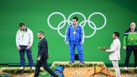 Iran berhasil menambah perolehan medali emas lewat Sohrab Moradi, atlet angkat besi Iran kelas 94 kilogram.