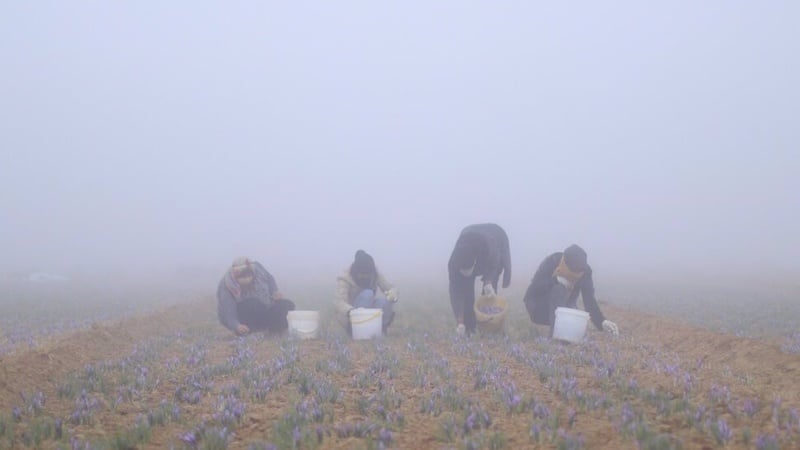 Panen safron dimulai dari akhir Oktober hingga awal Desember, saat ribuan pekerja musiman memetik bunga saffron berwarna ungu pada pagi hari yang dingin sebelum panas gurun menyengat.