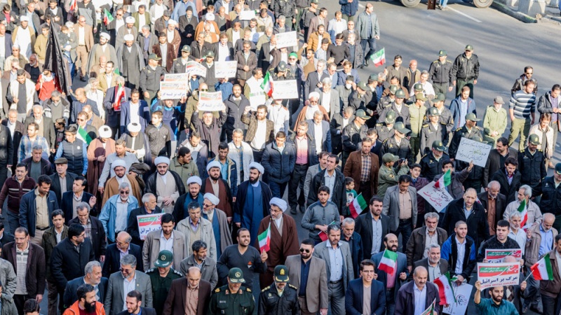 Rakyat Iran hari ini, Rabu (3/1) menggelar unjuk rasa di sebagian besar kota untuk menunjukkan kemarahan dan kecamannya atas konspirasi baru musuh dan aksi para perusuh yang merusak fasilitas publik.