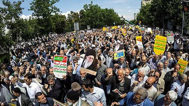 Jamaah shalat Jumat di seluruh kota di Republik Islam Iran menggelar unjuk rasa untuk mengecam inkonsistensi Amerika Serikat tehadap perjanjian nuklir JCPOA (Rencana Aksi Bersama Komprehensif).