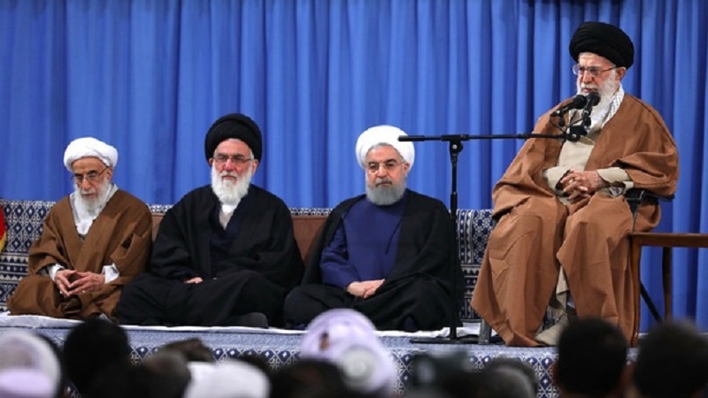 Ayatullah Khamenei dalam pertemuan dengan pejabat tinggi pemerintah Iran hari Minggu (15/7) menyinggung berbagai masalah penting dalam dan luar negeri, termasuk mengapresiasi sikap tegas presiden Iran yang disampaikan di Eropa belum lama ini.