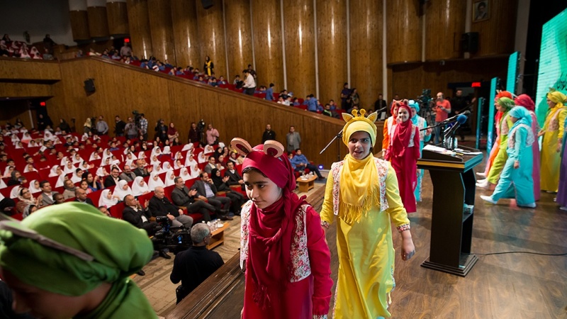 Suasana peringatan Hari Anak Sedunia yang digelar di pusat pendidikan pemikiran anak dan remaja pada hari Senin, 8 Oktober 2018. Acara ini dihadiri oleh Menteri Pendidikan Republik Islam Iran Sayid Mohammad Bathaei.