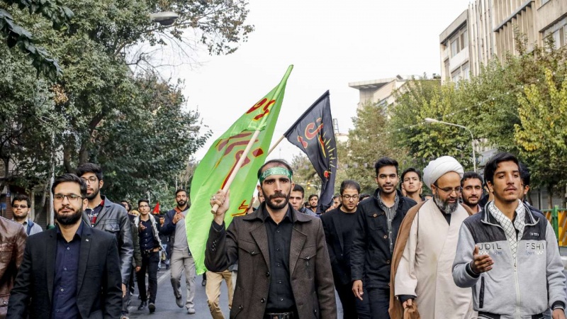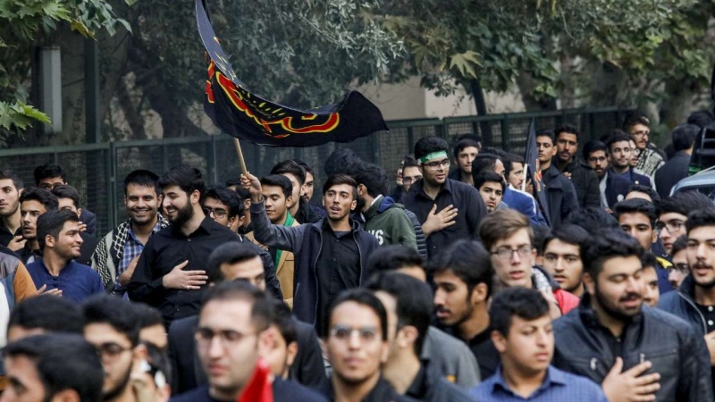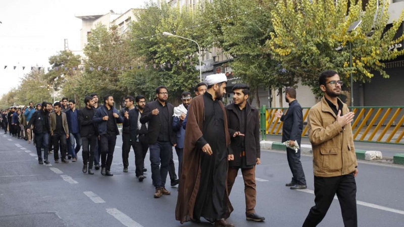 Ribuan mahasiswa dari berbagai universitas di Republik Islam Iran menyelenggarakan Pawai Arbain Huseini as di Tehran pada hari Selasa, 30 Oktober 2018.
