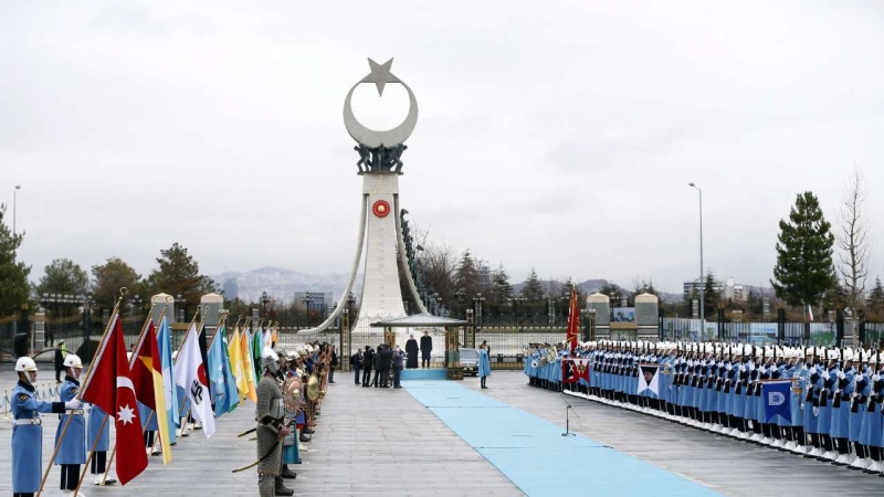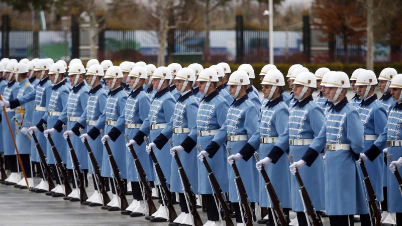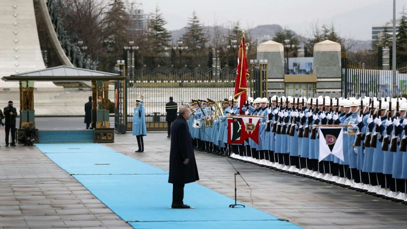 Presiden RII Hassan Rouhani disambut resmi oleh Presiden Turki Recep Tayyip Erdogan.