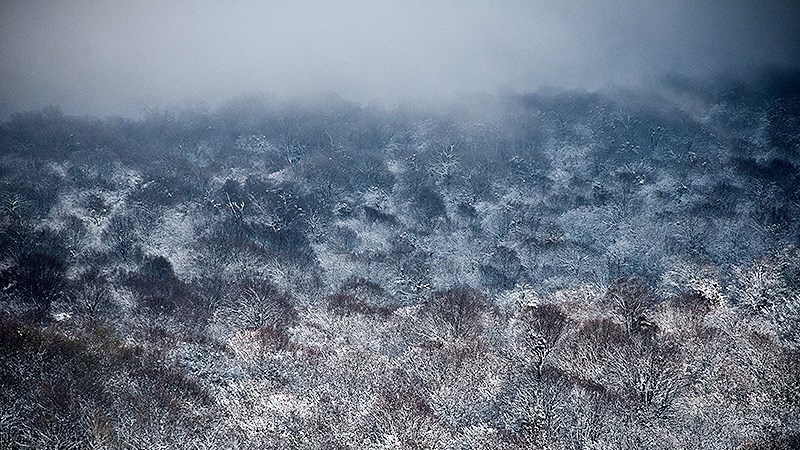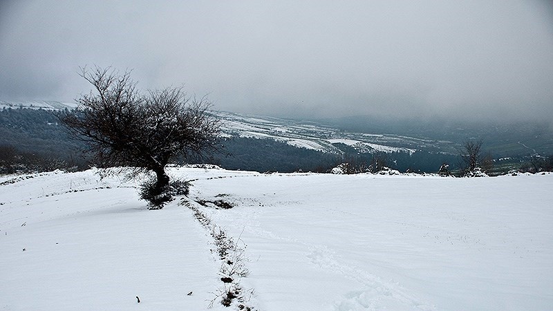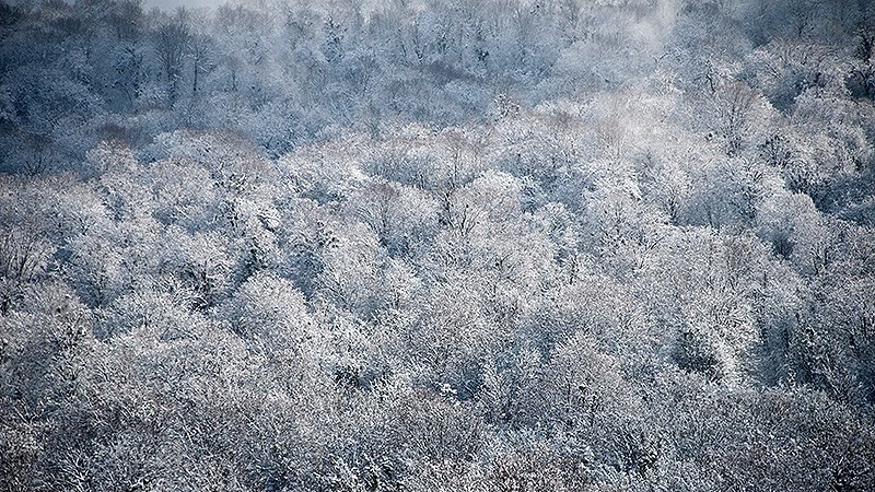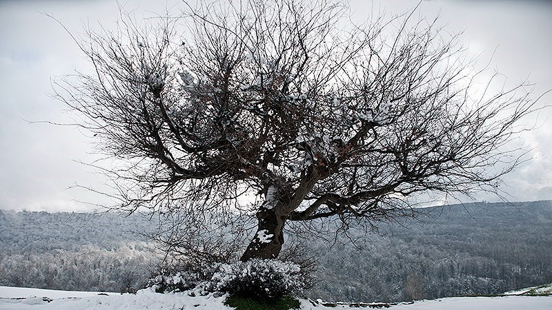 Di hari ketiga Musim Dingin, Senin, 24 Desember 2018, salju turun dan menyelimuti Mazandaran, Republik Islam Iran bagian utara.