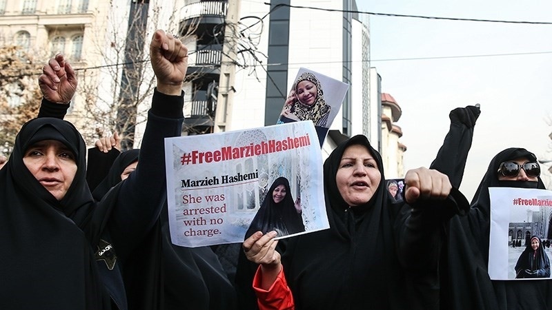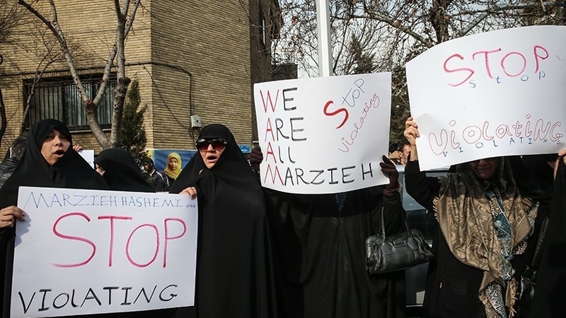 Hashemi telah memberi tahu kepada putrinya bahwa dia diborgol, dirantai kakinya dan diperlakukan seperti penjahat. Dia dipaksa melepas jilbab dan bahkan difoto tanpa kerudung setibanya di penjara.