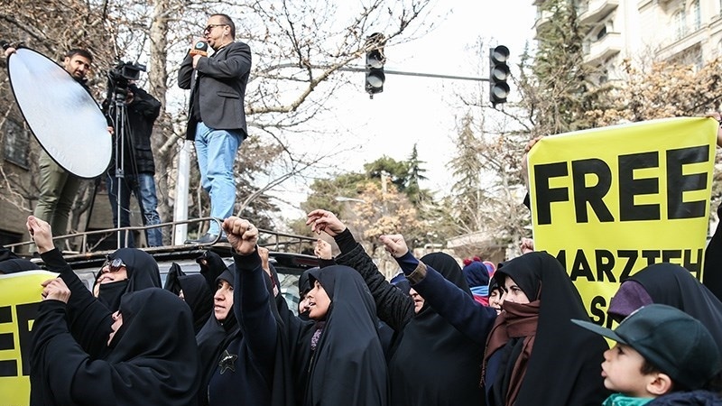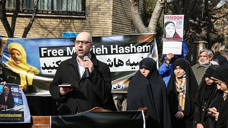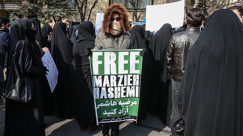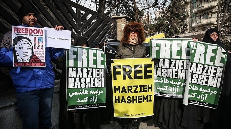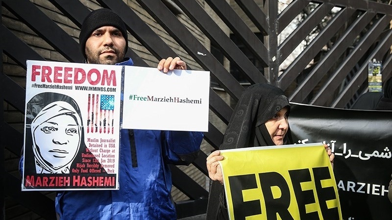 Demonstrasi yang digelar pada hari Minggu, 20 Januari 2019 itu menuntut pembebasan jurnalis Press TV yang ditangkap agen FBI AS. Jurnalis dan presenter televisi Press TV, Marzieh Hashemi ditahan dan dipenjara oleh pihak berwenang Amerika Serikat tanpa alasan dan dakwaan yang jelas.