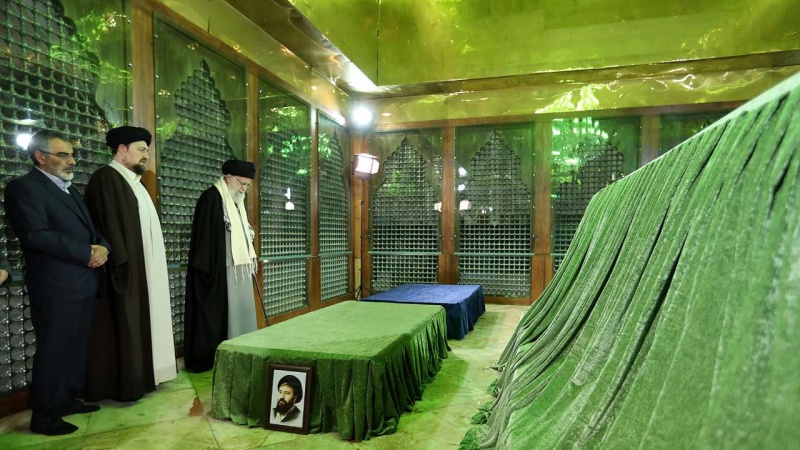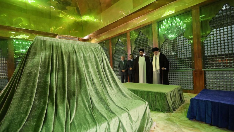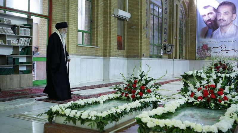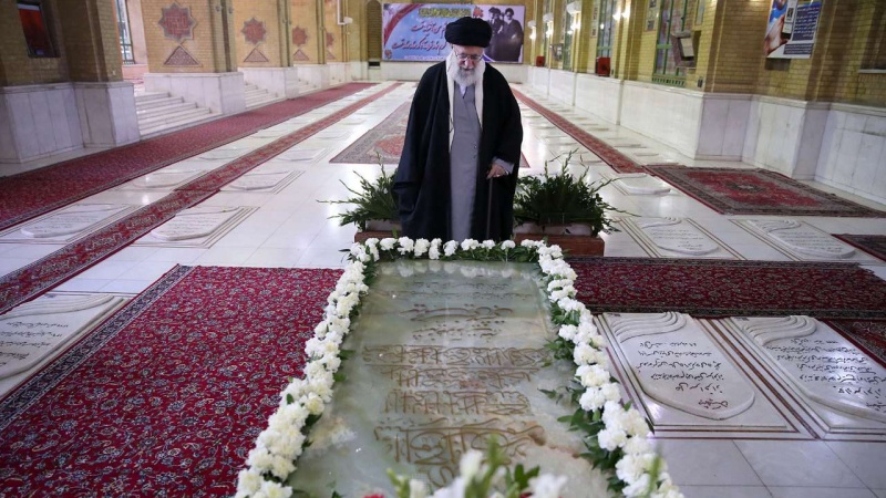 Pemimpin Besar Revolusi Islam Iran Ayatullah al-Udzma Sayid Ali Khamenei menziarahi makam Pendiri Republik Islam Iran Imam Khomeini ra dan makam para Syuhada revolusi di Tehran, ibu kota Republik Islam Iran.