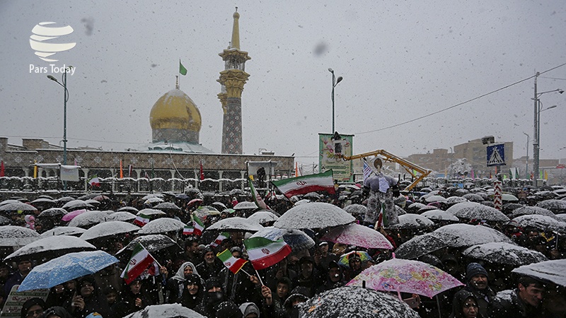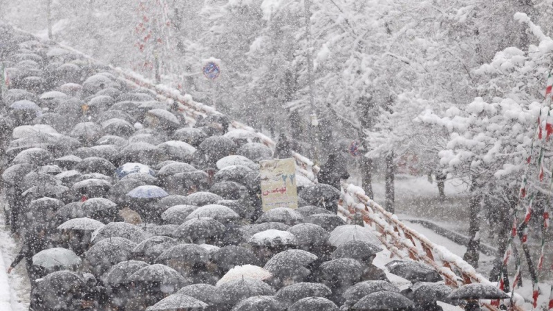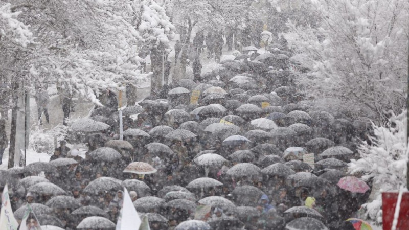 Meskipun cuaca dingin dan hujan, bahkan di sebagian kota diguyur salju, namun tidak menghalangi rakyat Iran untuk berpartisipasi dalam pawai nasional menandai peringatan Kemenangan Revolusi Islam yang memasuki dekade kelima ini.