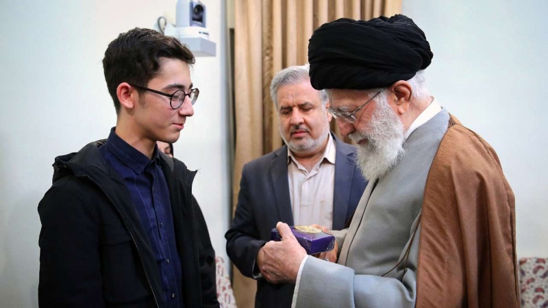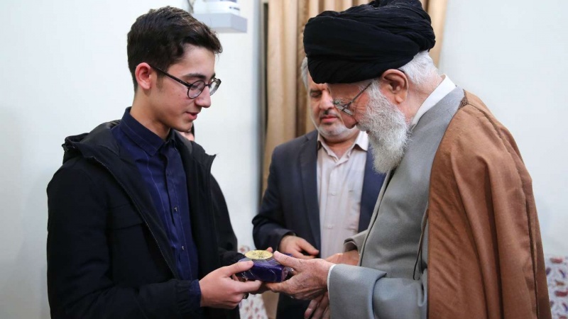 Rahbar Ayatullah al-Udzma Sayid Ali Khamenei memberikan hadiah kepada Arin Gholami.