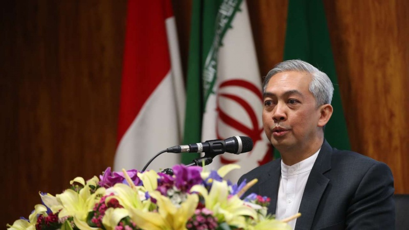 Duta Besar Berkuasa Penuh Republik Indonesia untuk Tehran Octavino Alimudin menyampaikan sambutan dalam pembukaan Pojok Indonesia Pertama di Tehran dan kedua di Republik Islam Iran ini.