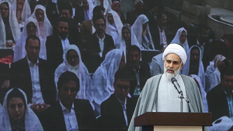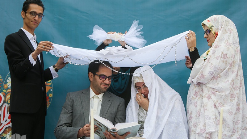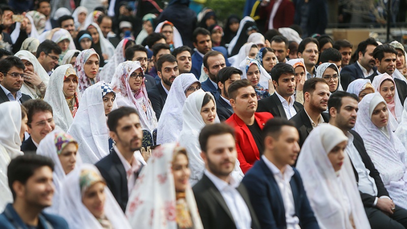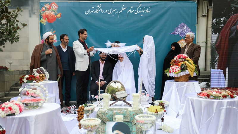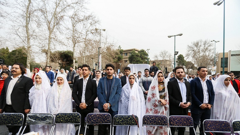 300 pasang pengantin mengikuti nikah massal yang dihadiri oleh Kepala Lembaga Perwakilan Rahbar (Pemimpin Besar Revolusi Islam) di Universitas Tehran Hujjatul Islam Mohammad Mehdi Karami.