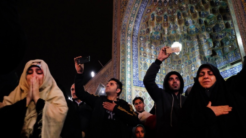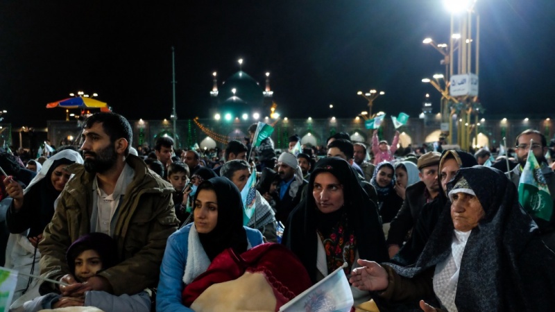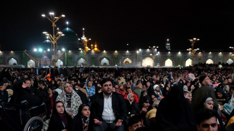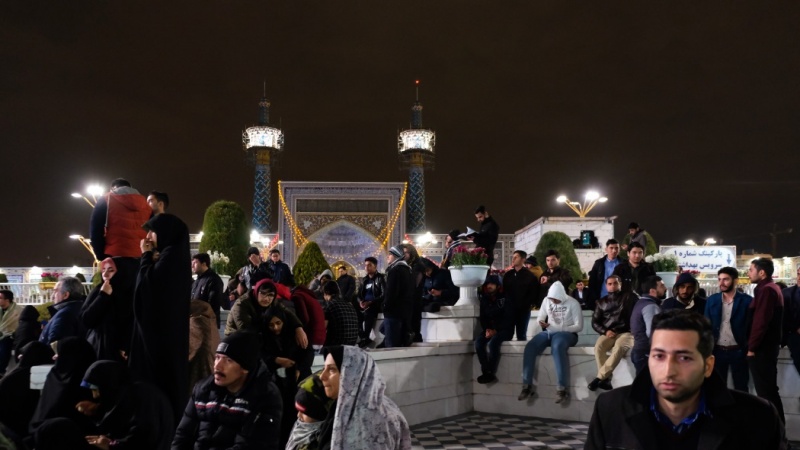 Masyarakat kota Mashhad berkumpul di kompleks Makam Imam Ridha as untuk berdoa di detik-detik pergantian tahun dari 1397 Hs menuju 1398 Hs.