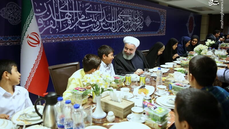 Presiden RII Hassan Rouhani berbuka puasa bersama anak-anak yatim, Selasa malam, 7 Mei 2019.