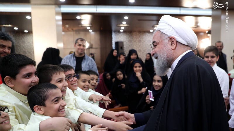 Presiden Republik Islam Iran Hassan Rouhani berbuka puasa bersama anak-anak yatim pada Selasa malam, 7 Mei 2019.