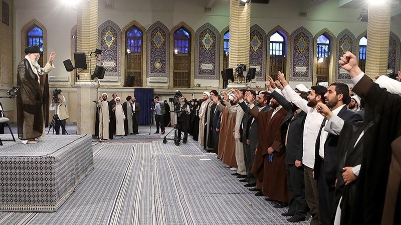 Ribuan pelajar agama bertemu dengan Ayatullah Khamenei.