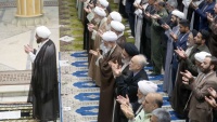 Shalat Jumat di Tehran yang diimami oleh Hujjatul Islam Mohammad Javad Haj Ali Akbari dilaksakan di Universitas Tehran, Republik Islam Iran.