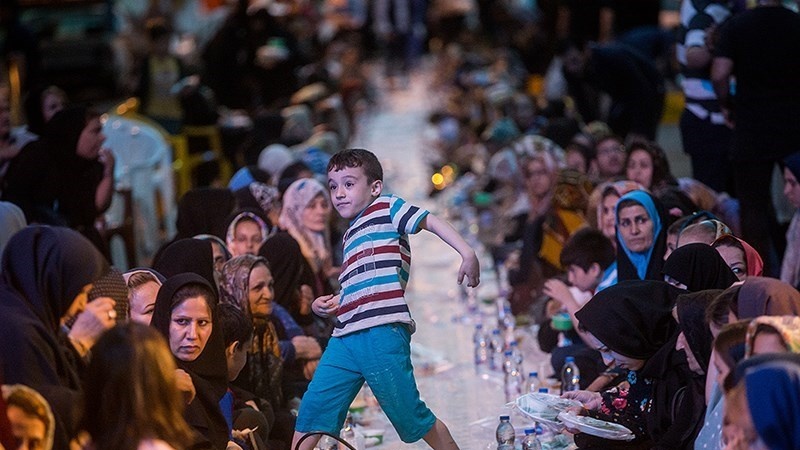Warga di sekitar Jalan Qasr-e Dasht, Tehran, ibu kota Republik Islam Iran menggelar buka bersama secara sederhana.