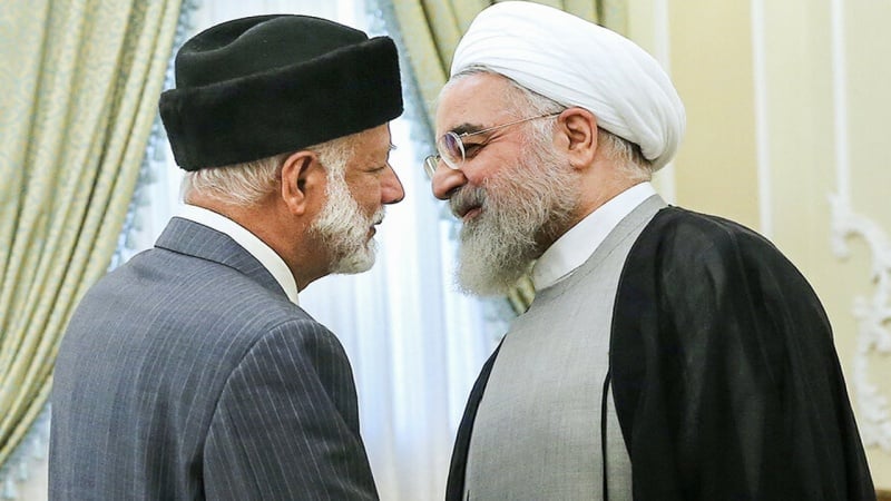 Presiden RII Hassan Rouhani (kanan) dan Menlu Oman Yusuf bin Alawi.