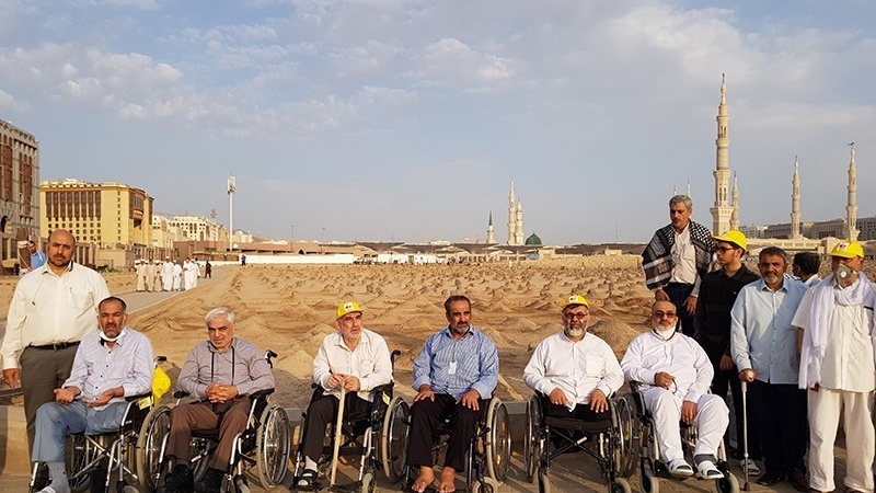 Puluhan veteran perang Republik Islam Iran yang menjadi jemaah calon haji tahun ini menziarahi Masjid Nabawi dan pemakaman Baqi', Minggu, 28 Juli 2019.