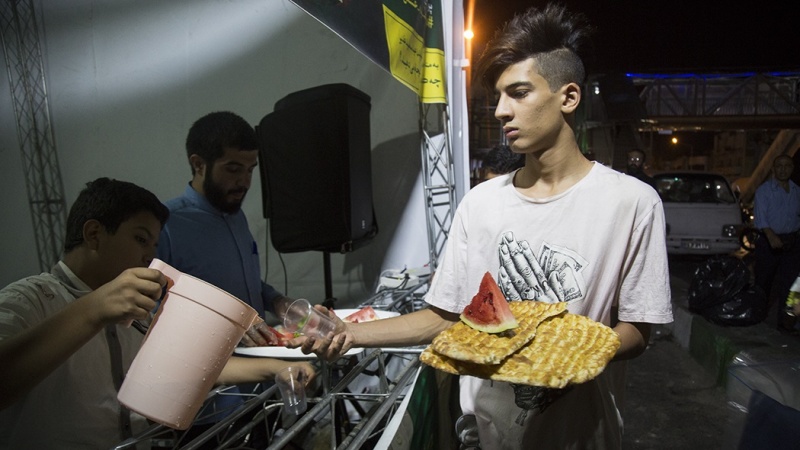Warga Tehran pada Senin malam, 19 Agustus 2019 membagikan makanan, kue dan sirup kepada masyarakat di jalan-jalan. Kegiatan itu berlanjut hingga hari Selasa.