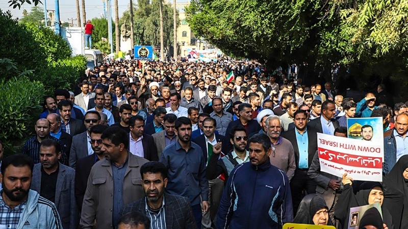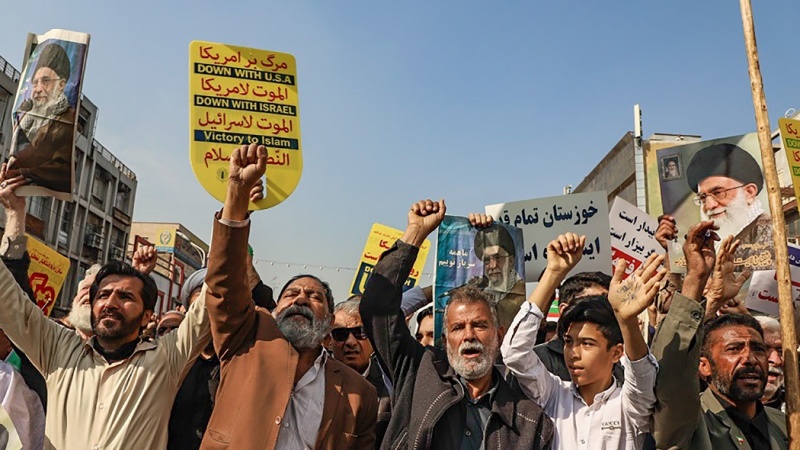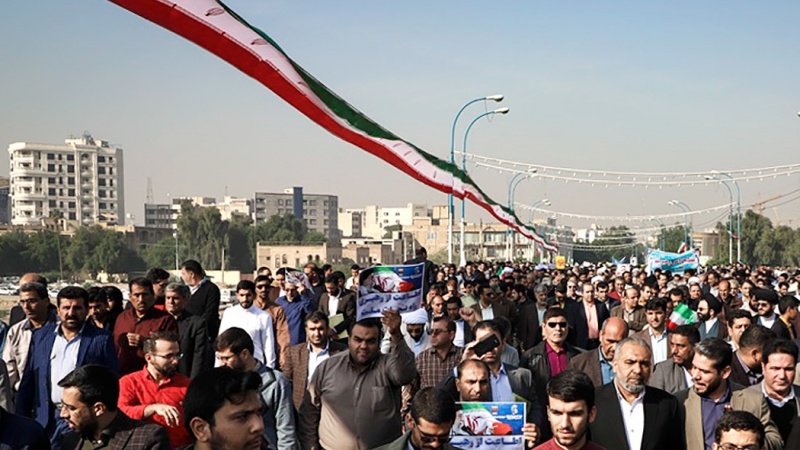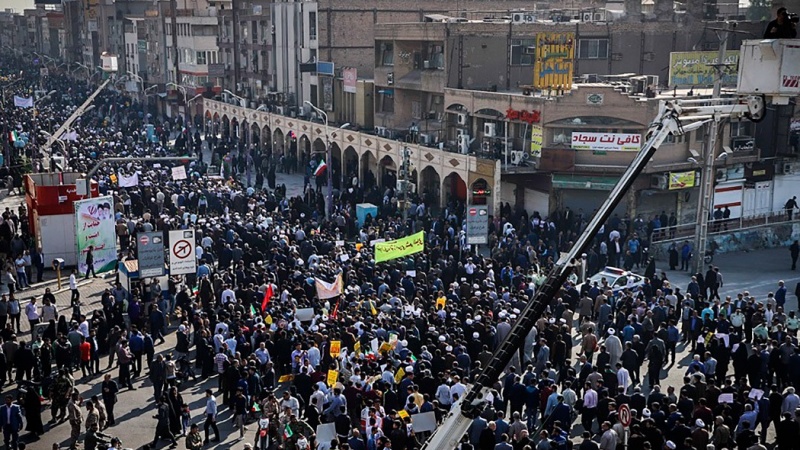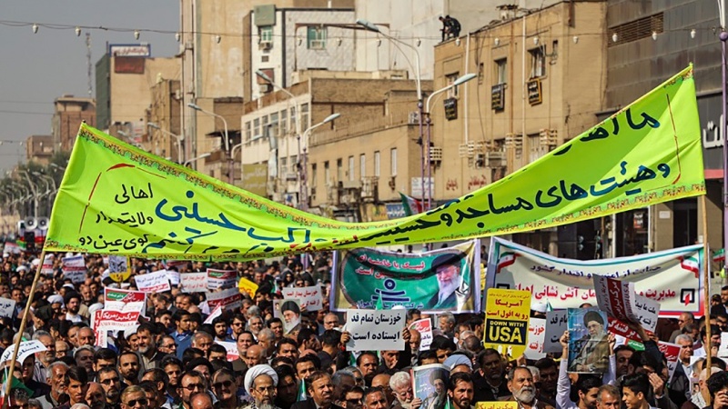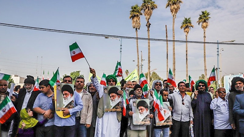 Penduduk di empat provinsi di Republik Islam Iran, yaitu Provinsi Kurdistan, Khorasan Utara, Semnan dan Khuzestan unjuk rasa pada hari Sabtu, 23 November 2019 untuk mendukung keamanan negara dan mengecam perusuh.