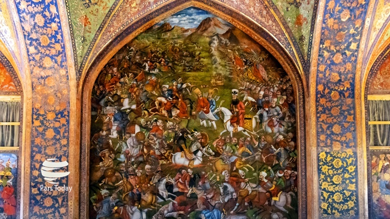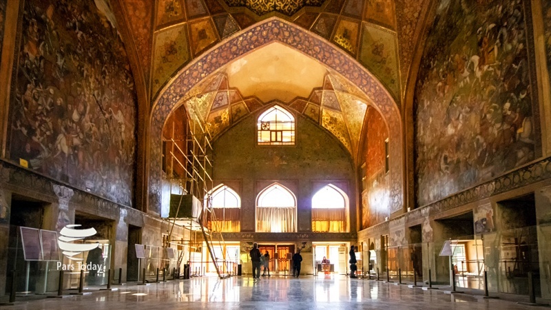 Chehel Sotoun merupakan sebuah mahakarya arsitektur pada masa Safawi, yang terdiri dari 18 tiang kayu, aula kaca, dan ruangan yang penuh dengan dekorasi berlapis emas yang indah dan lukisan Iran yang berharga.