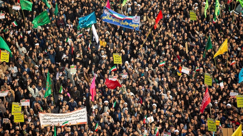 Ratusan ribu penduduk Tehran, ibu kota Republik Islam Iran menggelar pawai untuk menegaskan dukungan mereka kepada keamanan negara.