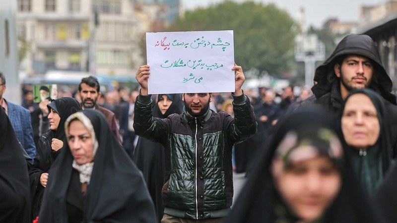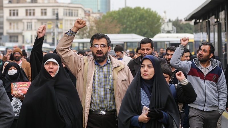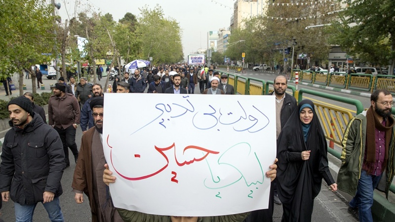 Unjuk rasa tersebut berpusat di Bundaran Enghelab Tehran pada hari Senin (25/11/2019). Komandan Korps Garda Revolusi Islam Iran Mayor Jenderal Hossein Salami menyampaikan pidatonya dalam acara ini.