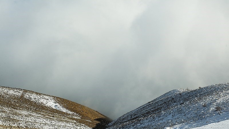 Salju musim gugur menyelimuti perbukitan Qazvin, barat laut Republik Islam Iran pada hari Sabtu, 7 November 2019.