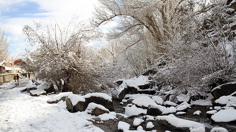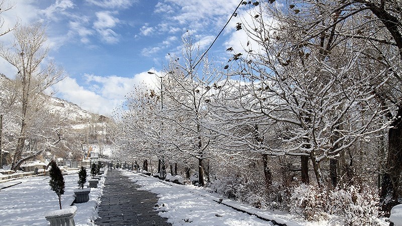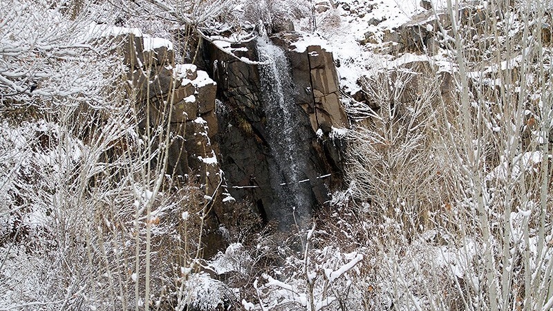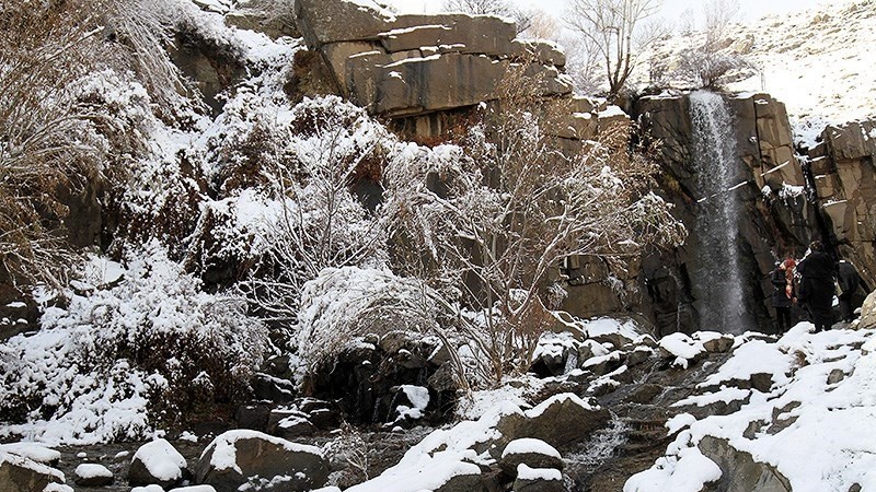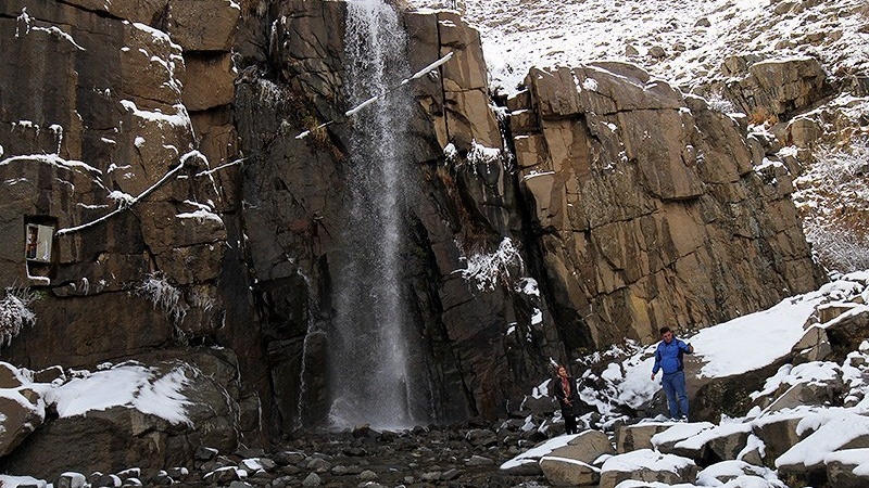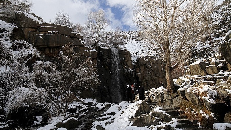Meskipun musim dingin masih 13 hari lagi, namun salju telah mengguyur beberapa daerah di Hamedan termasuk di lokasi air terjun Ganjnameh. (RA)