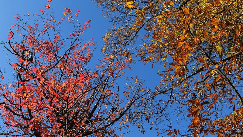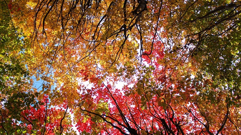 Ketika musim gugur tiba, dedaunan pohon mulai berubah warnanya. Ada yang berubah menjadi warna ungu, coklat, hijau tua, hijau muda, kuning dan merah.