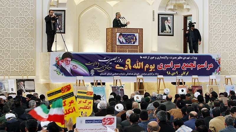 Puluhan ribu warga kota Bojnord, Gorgan dan Ahvaz menggelar acara dan pawai untuk memperingati 9 Dey pada hari Senin (30/12/2019).