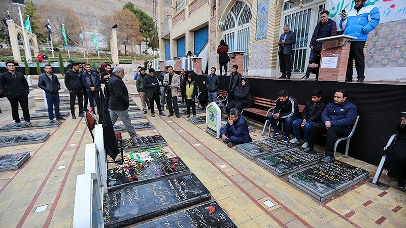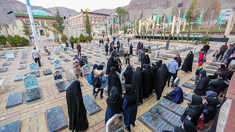 Warga Kerman mendatangi pemakaman Shuhada (Golzar-e Shohada) Kerman untuk melihat tempat di mana jenazah Shahid Soleimani akan di makamkan di sana.