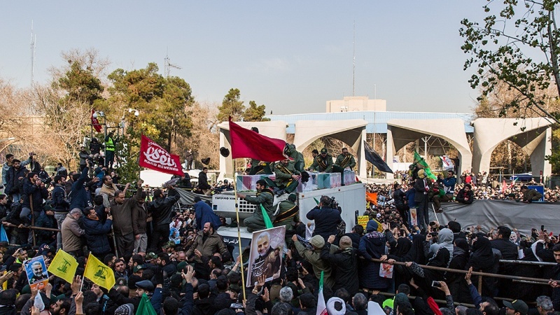 Tasyi' jenazah Komandan Pasukan al-Quds Garda Revolusi Islam Iran (IRGC) Letnan Jenderal Qassem Soleimani dan beberapa syuhada lainnya di Tehran berlangsung pada Senin pagi, 6 Januari 2020.