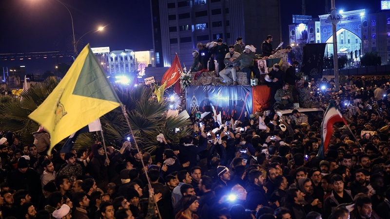 Tasyi\' jenazah Komandan al-Quds IRGC Letjen Qassem Soleimani di Qom.