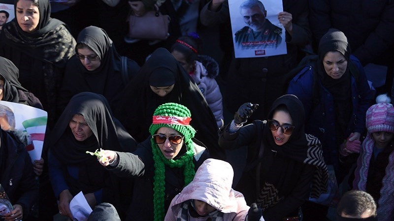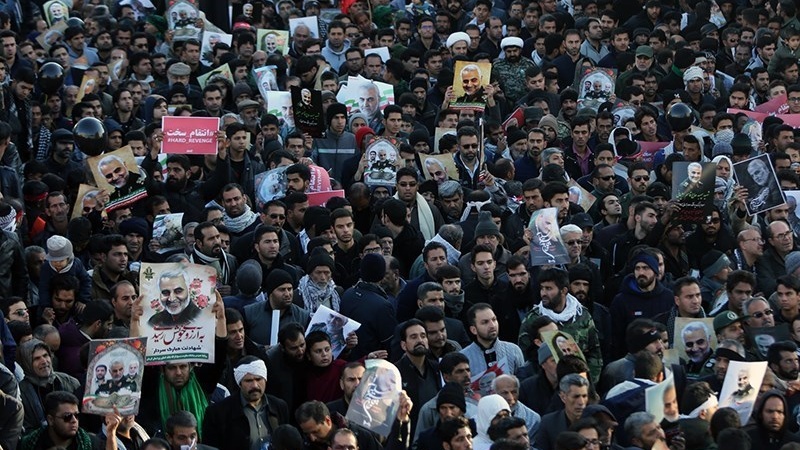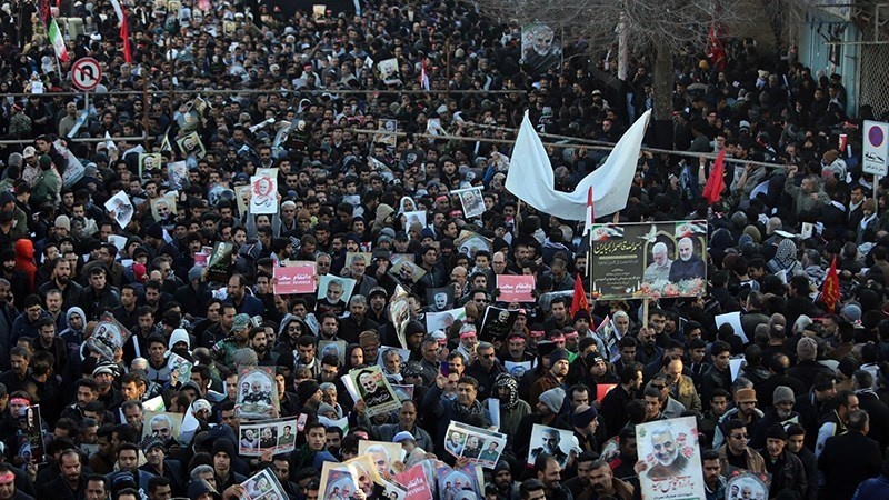 Jutaan warga Republik Islam Iran padati jalan-jalan di kota Kerman untuk menghadiri prosesi pemakaman Jenazah Komandan Pasukan al-Quds Garda Revolusi Islam Iran (IRGC) Letnan Jenderal Qassem Soleimani pada Selasa pagi, 7 Januari 2020.