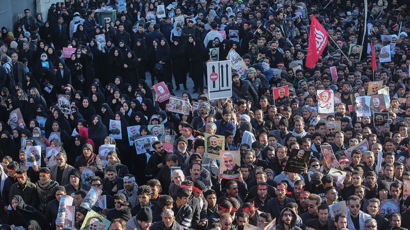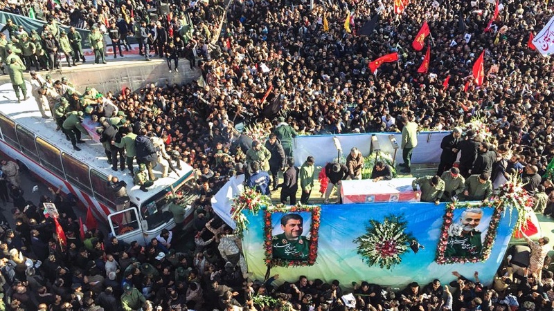 Prosesi pemakaman jenazah Syahid Soleimani di Kerman.